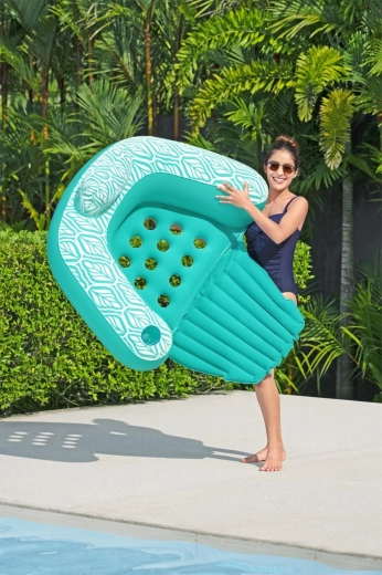 Nafukovacie kreslo Bestway Deluxe Comfort Plus je ideálne do bazéna, na jazero aj pokojné more. Ergonomické operadlo s integrovaným vankúšom podopiera chrbát a šiju, zatiaľ čo skladacia podnožka umožní zdvihnúť sedák a zvoliť si pohodlnú polohu pri sedení aj ležaní. Zamatovo hebký, vodoodolný povrch Comfort Plus je príjemný na dotyk a vo vode pôsobí ešte atraktívnejšie.