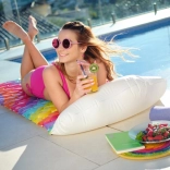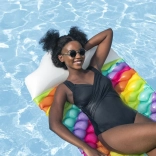 Dúhové nafukovacie ležadlo BESTWAY je ideálnou voľbou pre pohodové chvíle na vode. Vďaka kvalitnému PVC je odolné voči poškodeniu aj slnečnému žiareniu a vďaka viacerým vzduchovým komorám dobre drží stabilitu na hladine. Integrovaný vankúš podoprie hlavu a zaistí pohodlné opaľovanie aj dlhší relax.