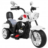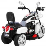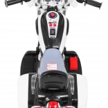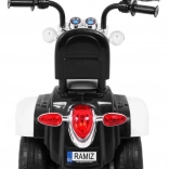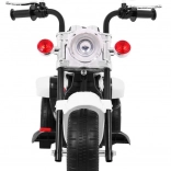 Štýlová detská elektrická trojkolka v štýle chopper ponúka realistický vzhľad motorky, pohodlné sedlo a jednoduché ovládanie vpred/vzad. Vďaka motoru RS-380 6V a batérii 6V/4,5Ah si deti užijú plynulú jazdu, zatiaľ čo LED predné svetlá a audio panel s melódiami a AUX sa postarajú o zábavu a bezpečnejšiu viditeľnosť.