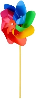 Veterník upúta svojimi živými farbami červenej, modrej, zelenej a žltej, ktoré priťahujú pozornosť a skrášľujú každé miesto.