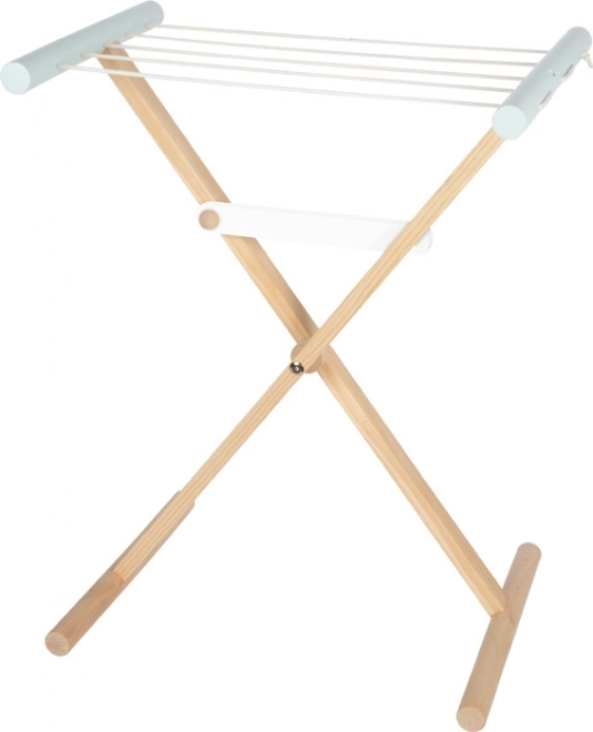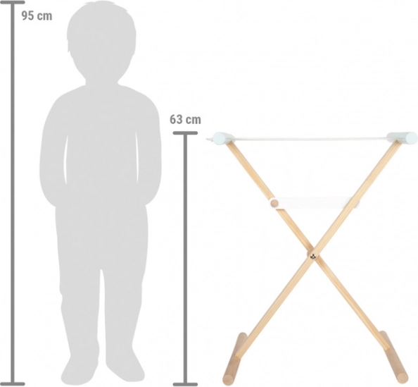 Stabilná konštrukcia s bezpečnostnou tyčou zabezpečí, že sušiak zostane pevný aj pri intenzívnom hraní. Jemná farba prírodného dreva dodáva čarovný vzhľad, ktorý sa hodí do každého interiéru. Po skončení hry sa sušiak ľahko zloží, čo šetrí miesto.