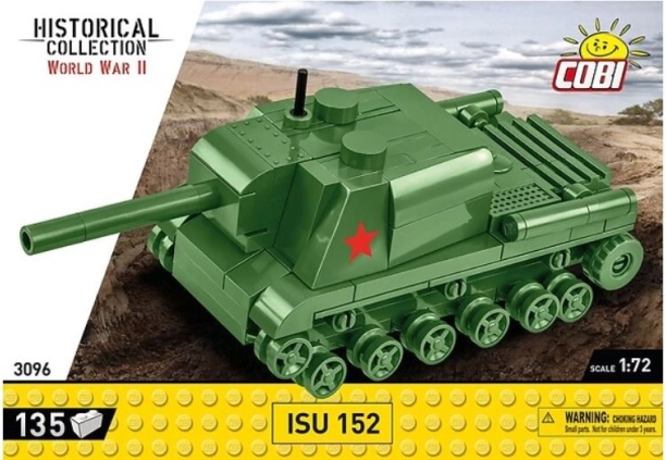 ISU-152, ťažké sovietske samohybné delo z obdobia druhej svetovej vojny, bolo známe svojou účinnosťou proti obrneným cieľom aj opevneniam vďaka mohutnému kanónu kalibru 152 mm a podvozku tanku IS. Táto mini replika od COBI v mierke 1:72 verne sprostredkuje charakter ikonického stroja v kompaktnej veľkosti, ideálnej na pracovný stôl či poličku.