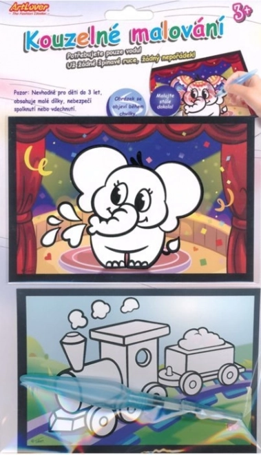 Kúzelné maľovanie vodou zabaví aj tých najmenších výtvarníkov. Stačí iba voda a vďaka špeciálnej bielej vrstve na obrázkoch, ktorá po navlhčení zmizne, môžete vytvárať kúzelné farebné obrázky. Akonáhle obrázok uschne, opäť sa pokryje bielou farbou, čo umožňuje maľovať znovu a znovu.
