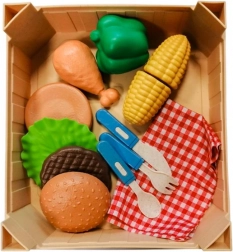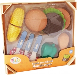 Pikniková súprava Plejo je ideálna pre všetkých malých kuchárov, ktorí si chcú užiť autentický pocit pri príprave vlastného hamburgeru. Obsahuje pestrú škálu plastových napodobenín potravín, vrátane hamburgerovej žemle, mäsa, zeleniny a príslušenstva.