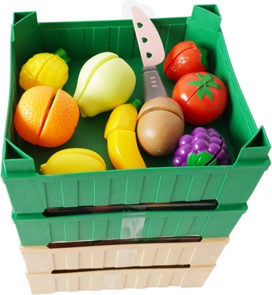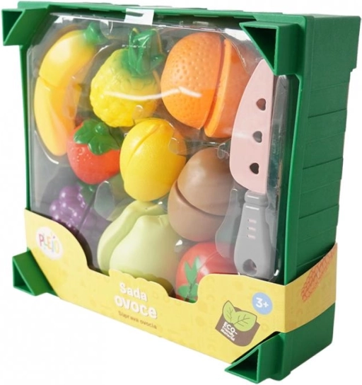 Doprajte svojim deťom radosť z hrania s touto Plejo súpravou ovocia. Každý kúsok ovocia je vybavený suchým zipsom, čo umožňuje ich jednoduché krájanie priloženým plastovým nožom. Bednička, ktorá sa dá stohovať na seba, zaručuje jednoduché upratovanie a kreatívne usporiadanie. Súprava obsahuje celkom 19 kusov, čo poskytuje dostatok možností pre fantazijnú hru.