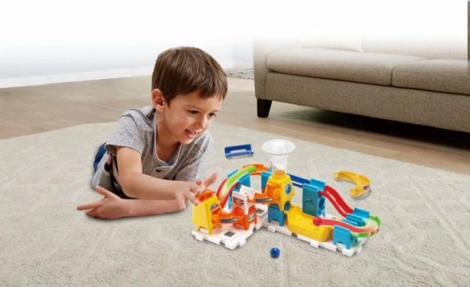 Guľôčková dráha je vyrobená z farebného plastu, čo zaručuje pútavý vzhľad a dlhodobú zábavu. Vďaka rôznym farebným komponentom sa dráha stáva vizuálne atraktívnou pre všetky vekové kategórie.