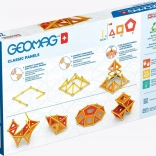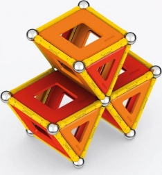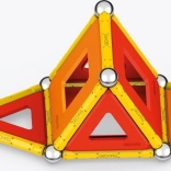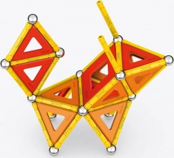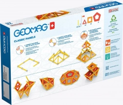 Objavte silu geometrie s Geomag Klasik Panely. Táto magnetická stavebnica obsahuje 28 žltých magnetických tyčiek, 20 oceľových guličiek, 16 trojuholníkových výplní, 2 červené výplne v tvare päťuholníka a 12 výplní v tvare štvorca. Súčasťou je tiež praktický plastový box na guličky a tyčky.