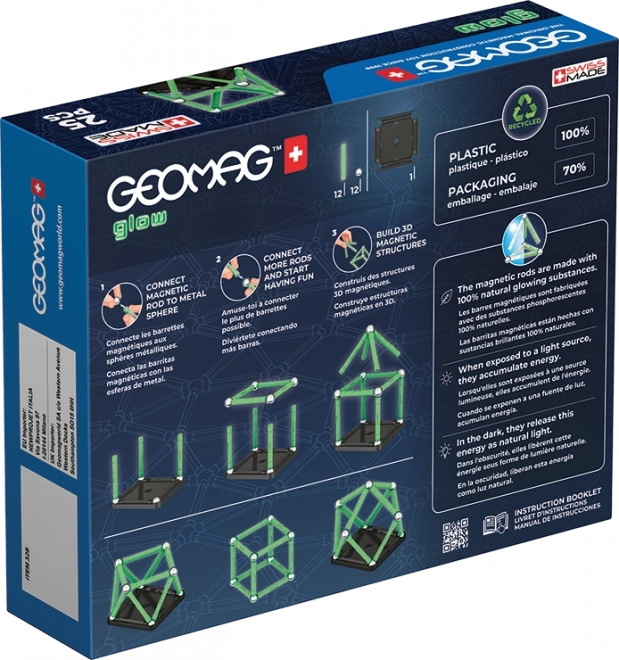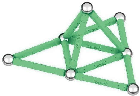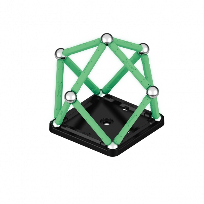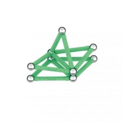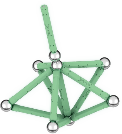 V tme žiariaca magnetická stavebnica ti prinesie nový rozmer zábavy. Stavebnica zo 100 % recyklovaného plastu sa v tme rozhodne nestratí! Balenie obsahuje celkom 25 dielov – 12 svietiacich tyčiniek, 12 guľôčok a jeden stabilný podstavec čiernej farby v tvare štvorca. Určené pre deti od 3 rokov.