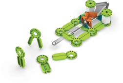 Stavebnica GEOMAG Mechanics Challenge spája magnetické tyčinky, kovové guľôčky a mechanické prvky, ktoré rozširujú možnosti každej stavby. Vďaka priťahovaniu a odpudzovaniu magnetov ľahko vytvoríte pohyblivé mechanizmy a reťazové reakcie. Zostavte magnetické delo, zamierte a vystreľte guľôčku do bránky – skvelá výzva pre jednotlivcov aj dvojice.