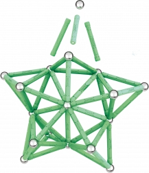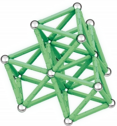 GEOMAG Glow prináša zábavné a vzdelávacie stavaníe s efektným fosforeskujúcim svitom. Nasvieťte diely, zhasnite a sledujte, ako vaše výtvory žiaria. Kombinácia magnetických tyčiniek a kovových guľôčok umožňuje stavať od jednoduchých tvarov po komplexné 3D konštrukcie.