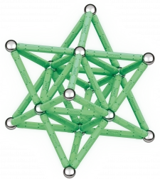 - 44 svietiacich magnetických tyčiniek, 44 oceľových guľôčok, 2 stabilné štvorcové podstavce, 2 stabilné päťuholníkové podstavce