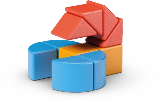 V krabičke nájdete nielen klasické kocky, ale aj trojuholník, kruhovú výseč a polguľu. Vďaka tomu môžu deti vytvárať postavičky, zvieratká, vozidlá aj originálne 3D stavby. Materiál zo 100% recyklovaného plastu poteší každého, kto hľadá kvalitnú a udržateľnú hračku.