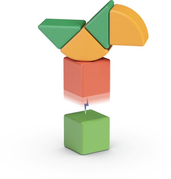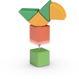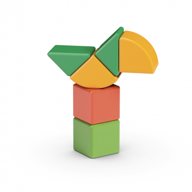 Sada obsahuje 6 dielikov – popri klasických magnetických kockách aj ďalšie tvary, ktoré rozširujú možnosti stavania. Materiály sú odolné a bezpečné, farebné prevedenie je lákavé a podnecuje fantáziu. Stavebnica je ideálna ako prvý krok do sveta STEM hier.