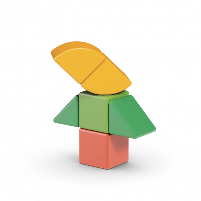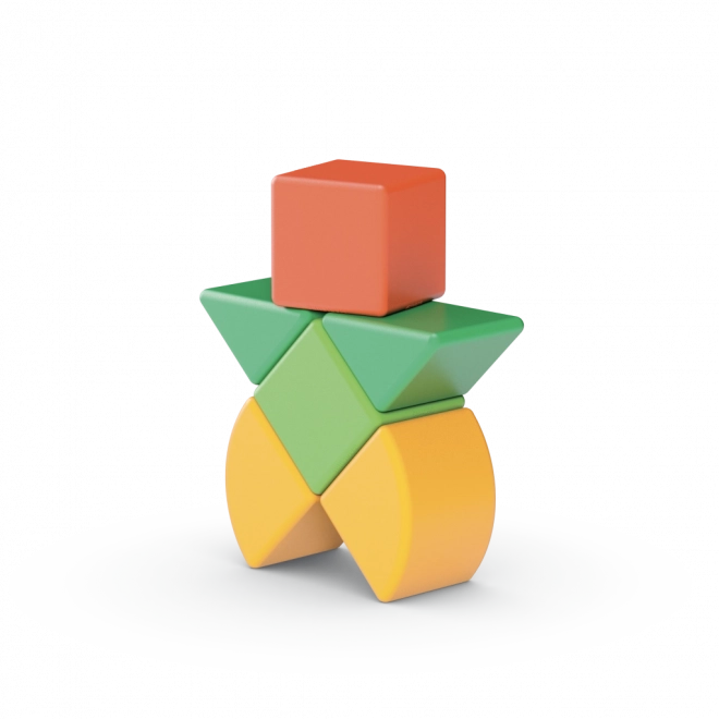 Kombinácia kociek a ďalších tvarov rozvíja kreativitu, jemnú motoriku a logické myslenie už od útleho veku.