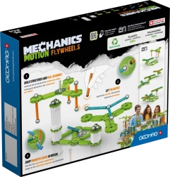 Stavebnica GEOMAG Mechanics Motion Flywheels prináša chytrú mechaniku a magnetické kúzlo do každého detského izby. Vďaka špeciálnym zotrvačníkom a magnetickým tyčkám sa zostava dokáže roztočiť bez potreby batérií – stačí správne usporiadanie pólov a guľôčky fungujúce ako ložiská.