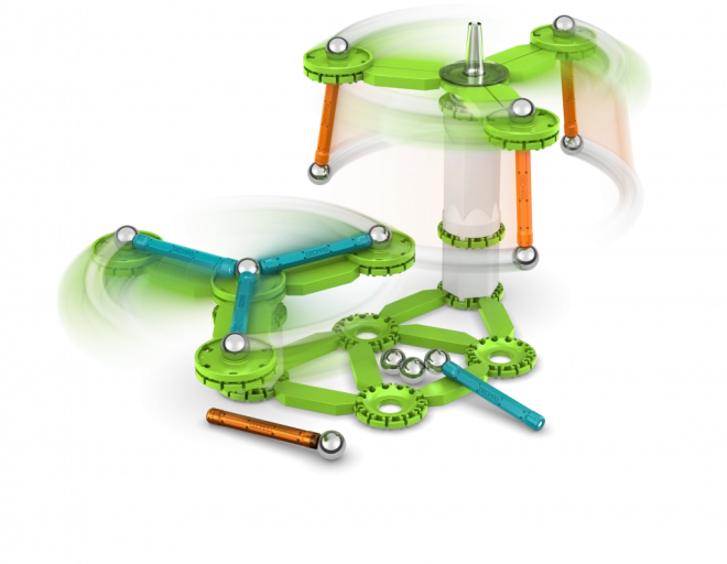 Podporuje logické myslenie, trpezlivosť a kreativitu, zároveň jednoducho vysvetľuje princípy rotácie, zotrvačnosti a magnetizmu. S 96 dielmi možno vytvárať rozmanité modely a experimentovať s rýchlosťou aj stabilitou rotácie.