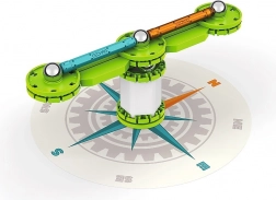 Stavebnica GEOMAG Mechanics Motion Kompas kombinuje magnetické tyčinky, kovové guľôčky a šikovné mechanické prvky do funkčného modelu kompasu. Deti si postavia stabilný základ s orientačnými smermi, vyrovnajú póly a pomocou guľôčkového ložiska zaistia plynulý, presný pohyb strelky. Všetko je navrhnuté pre intuitívne učenie a dlhodobú zábavu.