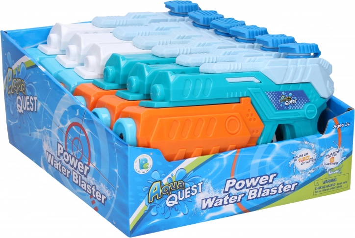 Zábavná vodná pištoľ ideálna pre letné hry na záhrade alebo na pláži. K dispozícii v dvoch výrazných farbách, modrej a oranžovej.