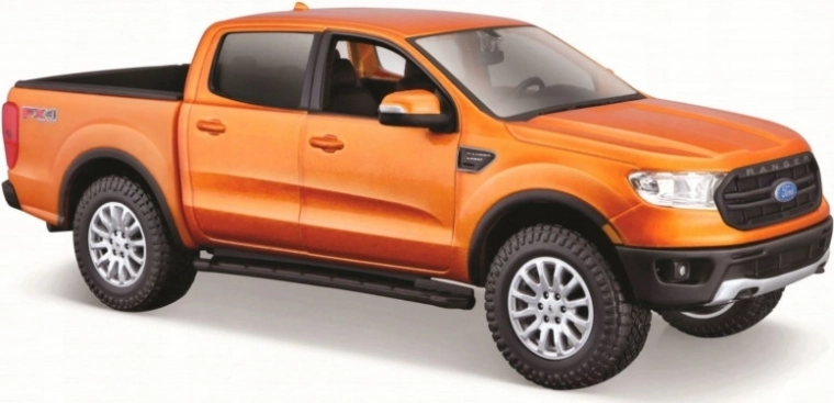 Kompaktný model auta Ford Ranger 2019 v mierke 1/27 s oranžovou farbou. Vyniká kovovou karosériou a plastovými detailami, čo zabezpečuje vysokú odolnosť a estetický vzhľad.