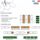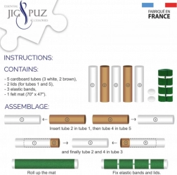 Súčasťou balenia je všetko, čo potrebujete: kartónové tubusy na pevné jadro, filcová podložka 180 × 120 cm, plastové viečka a upínacie pásky. Vďaka veľkému rozmeru ponúka podložka dosť miesta aj na pohodlné triedenie dielikov podľa tvarov a farieb, čo zrýchľuje a spríjemňuje skladanie.