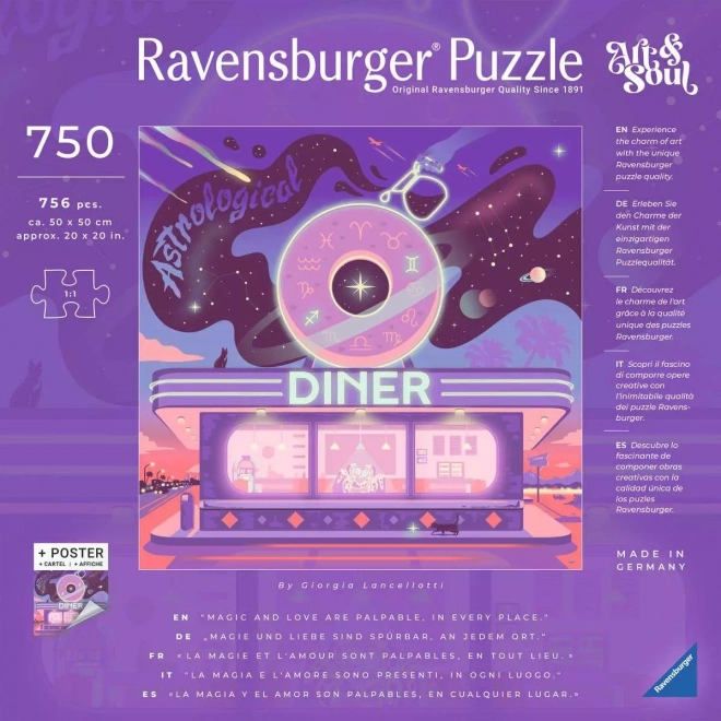 Ponorte sa do sveta ilustrácií a poskladajte si vlastné umelecké dielo. Štvorcové puzzle Ravensburger Art & Soul: Astrologická jedáleň prinášajú detailný motív, kvalitnú tlač a presné výseky, vďaka ktorým dieliky hladko do seba zapadajú. Ideálne na chvíle relaxu aj ako dizajnová dekorácia po zložení.