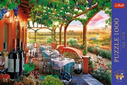 Vychutnajte si pokojné chvíle s prémiovým puzzle z radu Tea Time, ktoré žiari farbami a atmosférou stredomorskej vinice. Vďaka kvalitnému kartónu a presným výrezom do seba dieliky perfektne zapadajú a držia pokope, takže môžete pohodlne prenášať aj väčšie zložené časti.