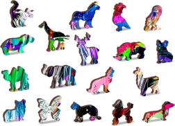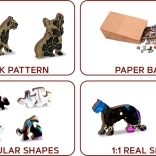 Vďaka špeciálne tvarovaným dielikom, ktoré predstavujú zvieratá, stavby alebo predmety, je skladanie puzzle zábavnejšie a kreatívnejšie.