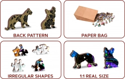 Toto puzzle je obojstranné, čo znamená, že ho môžete skladať podľa obrázku na lícovej strane alebo podľa tvaru rubovej strany so vzorom. Ekologicky orientovaný dizajn zabezpečí, že nenájdete žiadne plastové obaly, len papierový sáčok a krabičku.