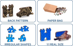 Ponorte sa do magického sveta Santorini s týmto unikátnym dreveným puzzlom. Každý dielik je precízne vyrezávaný laserom, čo zaručuje hladké hrany bez triesok. Puzzle je obojstranné, čo ponúka dva spôsoby skladania - podľa obrázka alebo tvaru. Toto puzzle je vytvorené z HDF dreva a je balené ekologicky bez plastov.