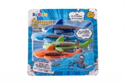 4 farebné žraloky, ktoré sa po vhodení do vody potopia a ty ich musíš vyloviť.