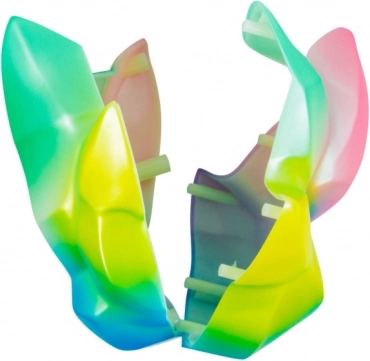 Futuristické farebné tóny a geometrický vzhľad kapsuly dodajú zbierke jedinečný štýl a lákavé zobrazenie.