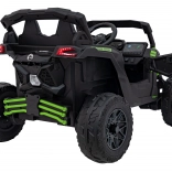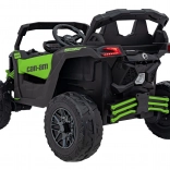 Detské elektrické vozidlo CAN-AM Maverick v zelenej farbe ponúka realistický zážitok z jazdy pre deti. Disponuje silným motorom, robustnými kolesami a funkčnými LED svetlami pre bezpečnú a zábavnú jazdu.