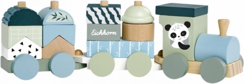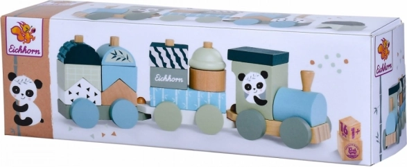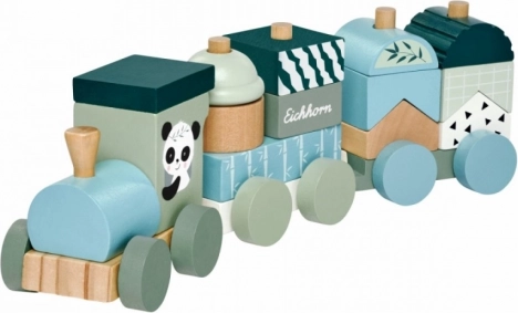 Drevený vláčik EICHHORN Panda je ideálna hračka na prvé stavanie a objavovanie tvarov a farieb. Deti môžu kocky ľubovoľne nasadzovať na kolíky a skladať si vlastné vozíky, čo podporuje kreativitu a koordináciu oko‑ruka. Rozkošný motív pandy a príjemné pastelové farby z neho robia atraktívny doplnok detskej izby.