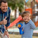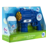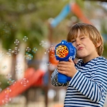 Striekačka na bubliny Fru Blu vystreľuje vysokou rýchlosťou obrovské množstvo bublín a poskytuje vášmu dieťaťu hodiny zábavy. Bubliny sú osvetlené LED svetlom, ktoré zvýrazňuje ich jedinečné farby. Vďaka jednoduchému používaniu a nádobke na tekutinu odolnej proti rozliatiu je fúkanie bublín skvelou aktivitou pre staršie aj mladšie deti. Sada obsahuje hračku na vystreľovanie bublín a 0,4-litrovú fľašu s tekutinou. Vyžadujú sa batérie: Potrebné batérie: 3 × AA. Batérie nie sú súčasťou balenia. Hračka je vhodná pre deti staršie ako 3 roky.