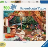 Jedinečný dizajn a premyslená štruktúra ponúkajú dokonalý relax pri stavbe pôsobivého obrazu s rozmermi cca 70 x 50 cm. Toto puzzle je skvelým spôsobom, ako zlepšovať jemnú motoriku a zároveň sa preniesť do pokoja prírodného prostredia útulnej chatky.