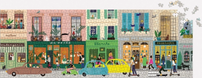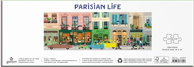 Panoramatické puzzle „Parížsky život“ vám prináša zážitok z romantického Paríža. Dielo vytvorené umelkyňou Anne Bentley zachytáva starosvetský šarm štvrtí ako Le Marais. Po zložení má puzzle rozmery 99 × 35,4 cm, čo je skvelá veľkosť na dekoráciu interiéru.