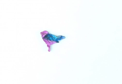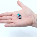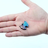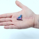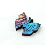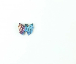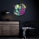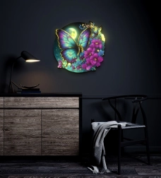 Motív motýľa v modrých a fialových tónoch vyniká vďaka UV digitálnej tlači a netradičnému kruhovému formátu, ktorý zaujme na prvý pohľad.