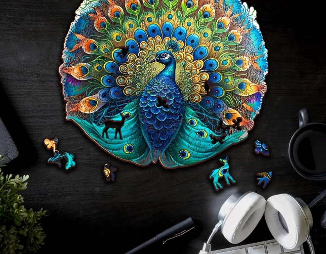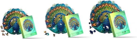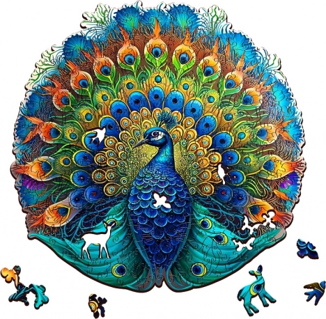 Toto drevené puzzle v podobe páva ohromí svojim nádherným dizajnom a živými farbami. Vďaka UV digitálnej tlači sú farby realistickejšie a uchvátia každého milovníka skladačiek.