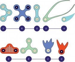 Viacsmerové dieliky s rotáciou 360° a fixáciou v 24 polohách držia pevne pokope a umožnia stavať stabilné 2D aj 3D konštrukcie.