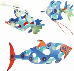 Vytvárajte medúzy, ryby aj veľryby – časť dielikov fosforeskuje, takže vaše výtvory ožijú aj v tme a podporia fantazijnú hru.