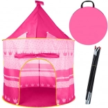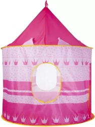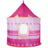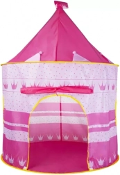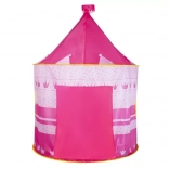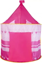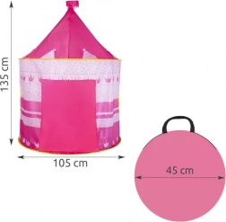 Štýlový ružový stan v tvare zámku s potlačou koruniek podnecuje kreatívnu hru a fantáziu. Dve sieťované okienka zabezpečujú cirkuláciu vzduchu a prehľad, vchod možno pohodlne zrolovať a zapnúť na suchý zips. Priestranné prevedenie pojme niekoľko detí a vytvorí útulný kútik na čítanie aj hranie.