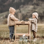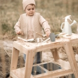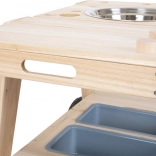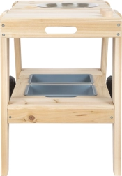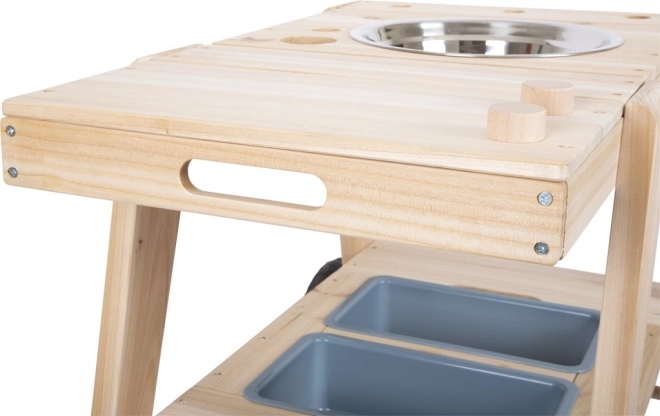 Dve vyberateľné misky a nerezový drez pozývajú k miešaniu, naberaniu a „vareniu“. Ideálna alternatíva k pieskovisku na rozvoj zmyslov a fantázie.