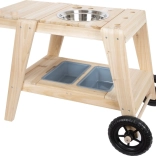 Konštrukcia z prírodného dreva vyniká odolnosťou a stabilitou, dve vyberateľné misky a odkladací priestor uľahčujú upratovanie aj organizáciu. Zapustené otvory v pracovnej doske sú skvelé na uchytenie hadice na vodu alebo uloženie náradíčok.