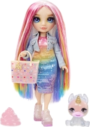 Súčasťou je roztomilý jednorožčí spoločník a gélový sliz, ktorý môžete naťahovať, stláčať a používať na dekoráciu doplnkov – priehľadnej kabelky či platformových topánok. Vlasy stačí po prvom rozbalení jemne umyť, aby boli hebké a lesklé. Kolekciu dopĺňajú obľúbené postavy ako Violet, Skyler, Jade, Sunny a Ruby – pozbierajte ich a vytvorte si svoj dúhový svet.