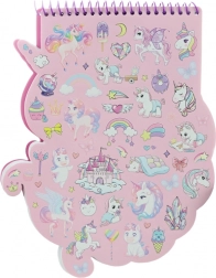 Vyrezávané dosky v tvare dinosaura alebo jednorožca a horná špirála zabezpečujú pohodlné otáčanie stránok a zábavný vzhľad.