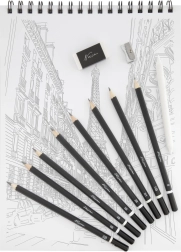 Táto kompletná sada na skicovanie je ideálna pre umelcov všetkých úrovní. Obsahuje nasledujúce komponenty: