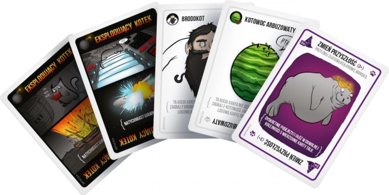 Exploding Cats je mačacia, úplne bezpečná varianta ruskej rulety. Počas hry si hráči v každom ťahu ťahajú jednu kartu, kým niekto nevytiahne vybuchujúce mačiatko – v tej chvíli nešťastník exploduje a zomrie, čím hra končí. Našťastie sú v balíčku aj karty, vďaka ktorým môžeme nevyhnutné oddialiť alebo mňaukajúcu bombu zneškodniť laserovým ukazovadlom, pohladením bruška alebo sendvičom s mačacou maškrtou. Aby sme vyhrali, musíme s kartami, ktoré spravujeme, múdro hospodáriť.