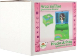 Táto hracia šperkovnica ponúka bezpečné a prehľadné miesto pre detské poklady. Po otvorení veka s vstavaným zrkadielkom sa po natiahnutí kľúčika roztočí bielo‑ružový jednorožec a zaznie melódia, ktorá vyčarí úsmev pri každom otvorení.