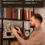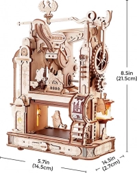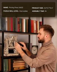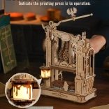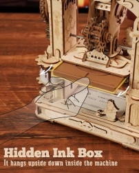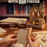 Vdychnite život klasickému tlačiarenskému stroju v jedinečnom steampunkovom štýle. Po stlačení rukoväte sa roztočia ozubené kolieska, figúrky „tlačiarskych medveďov“ uvedú stroj do pohybu a po dokončení úlohy sa rozsvieti svetlo. Bočné stredoveké hodiny s astrolábom dodávajú modelu pôvab a autenticitu. Model je ideálny ako kreatívny DIY projekt, atraktívna dekorácia aj šikovná vzdelávacia pomôcka na rozvoj technického myslenia.