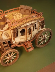 Štýlová 3D skladačka hracej skrinky v tvare historického dostavníka spája čaro 19. storočia s moderným DIY zážitkom. Po zostavení sa rozbehne na základe presného mechanického strojčeka – stačí natiahnuť pružinu a užiť si jemný pohyb aj hudbu. Predné kolesá majú funkciu otáčania, takže model pôsobí ešte realistickejšie.